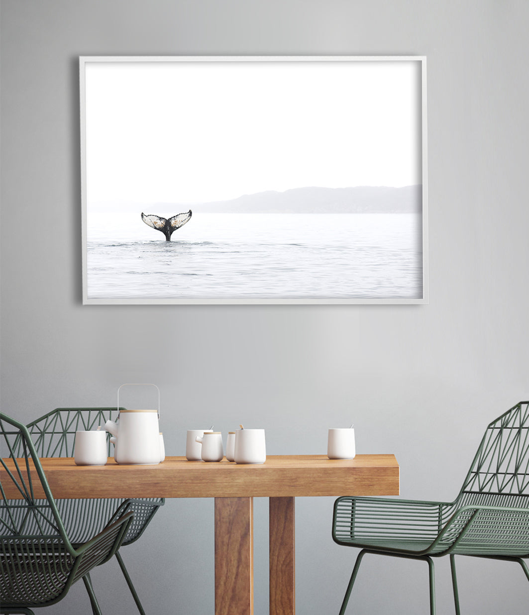 The Whale Tail Print beautifully captures this majestic ocean dweller diving at dawn.